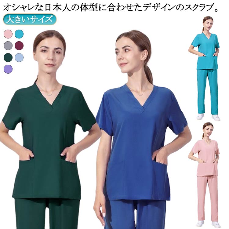 ■上下セット 女性 レディース ナース服 メンズ 男性 介護士 スクラブセット ユニフォーム スクラブ 女性用 医師 半袖 白衣 大きいサイズ