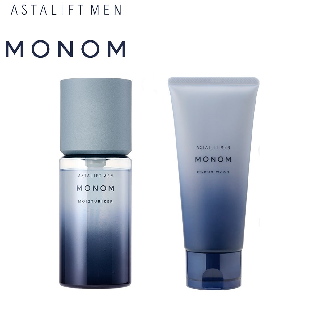 富士フイルムのナノテクノロジーを活かした男性向けスキンケアライン「モノム」。高保湿シンプルケア設計で、ユニセックスでもお使いいただけます。洗顔+保湿の2ステップで、シンプルかつ上質な肌ケアを叶えます。「スクラブウォッシュ」は、濃密泡×超微細なマイクロスクラブで洗い上げる洗顔料。保湿力と毛穴洗浄力を両立した洗い心地で、肌のうるおいをキープしながら、べたつき・乾燥の原因にもなる皮脂汚れをすっきり除去します。「モイスチャライザー」は、ひげ剃りなどの男性特有の生活習慣による乾燥原因に着目したオールインワンタイプの保湿液。Wヒト型ナノセラミド(※1)をはじめ、厳選した4種の肌保護成分(※2)を配合。乾燥ダメージを受けた肌を整え、うるおいで満たすとともに、健やかで快適な状態へ誘います。「スターターキット」は、洗顔料(スクラブウォッシュ・20g)と保湿液(モイスチャライザー・20m L)がセットになった約10日分(*)のお試しセットです。※1 セラミドNP、セラミドAP、セラミドEOP(整肌成分)※2 チャ葉エキス、アラントイン、酢酸トコフェロール、グリチルレチン酸ステアリル(肌保護成分)* 推奨使用量でご使用の場合ASTALIFT MEN MONOM(アスタリフト メン モノム)男性向け高機能スキンケアブランドであるアスタリフト メンから新たなサブブランドとして生まれたMONOM。富士フィルム独自のナノテクノロジーを活用し、乾燥ダメージを受けやすい男性の肌にアプローチしています。