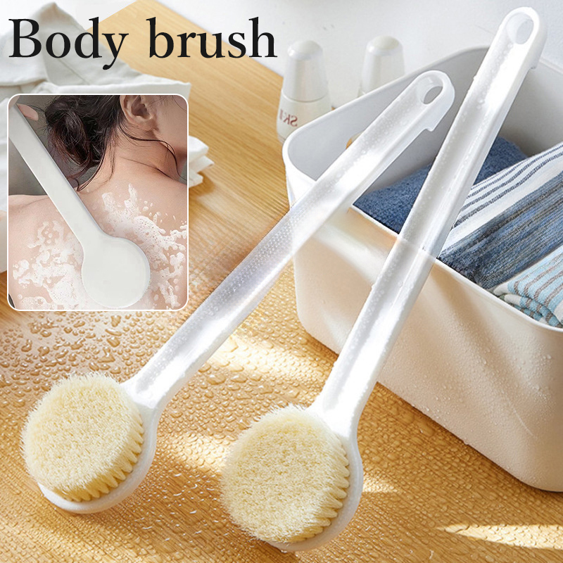 ■ボディブラシ シャワーブラシ ロング 長柄 吊り下げ 収納 背中 スキンケア 角質 毛穴 汚れ 体洗い 垢すり ニキビ 防止 シ