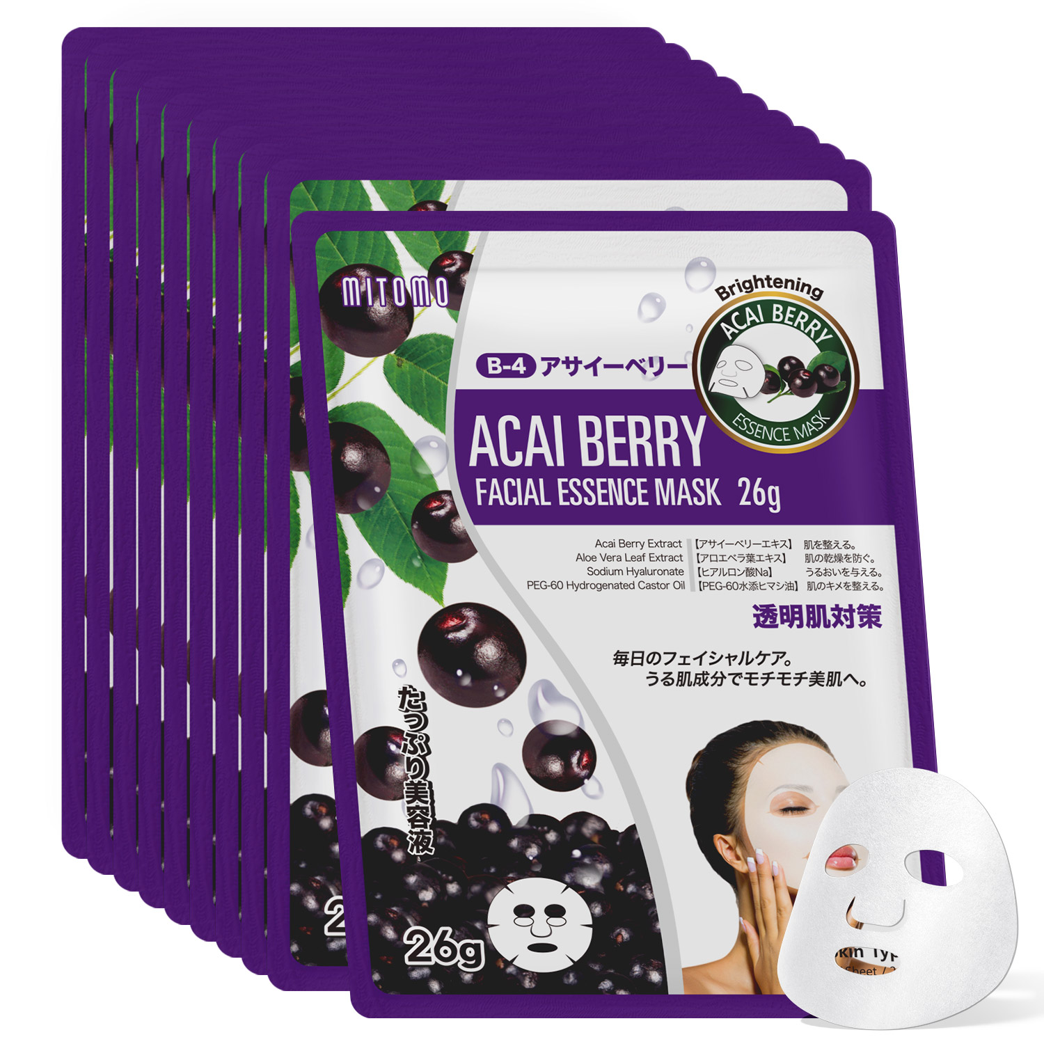■シートマスク フェイスマスク パック 10枚 ラベンダー ヒアルロン酸 日本製 送料無料 メール便 スキンケア 保湿 乾燥 肌荒れ MITOMO ラベ