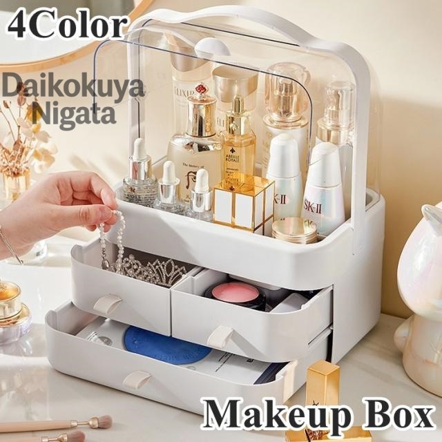 ■メイクボックス コスメボックス 化粧品収納 蓋付き 持ち手付き 引き出し 卓上 小物収納 スキンケア メイク道具 アクセサリー