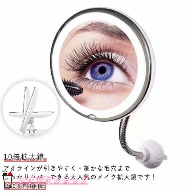■LED化粧鏡 壁掛けメイクミラー 10倍拡大鏡 スキンケア 浴室鏡 女優ミラー 10倍拡大鏡 360度回転ミラー スタンドミラー ミラー 誕生日 プ