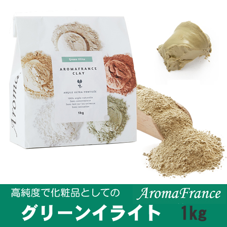 ■アロマフランス グリーンイライト 1kg クレイ 高純度 化粧品 泥 パック 洗顔 入浴剤 スキンケア ヘアケア スカルプケア 頭皮 天然 ミネラ