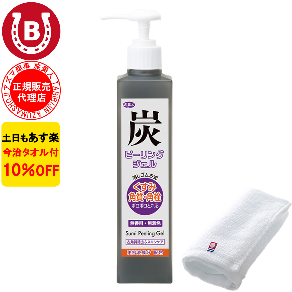 ■ピーリングジェル アズマ商事 炭 ピーリングジェル 270g ピーリング ジェル 小鼻の汚れ 旅美人 10%OFF 今治タオル付 送料無料