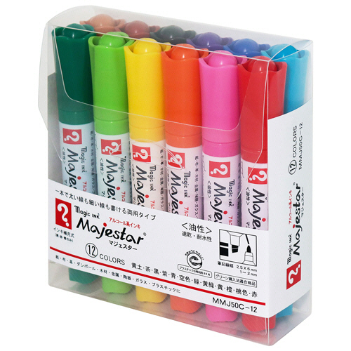 ■寺西化学 油性マーカー マジックインキ マジェスター 太字+細字 12色(各色1本) 1パック(MMJ50C-12) 目安在庫=○