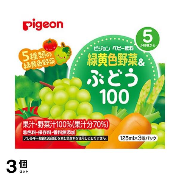 ■3個セット クーポン有 ピジョン 紙パック飲料 緑黄色野菜&ぶどう100 125mL (×3パック)※使用期限2026年3月のものを含む特価商品となっ