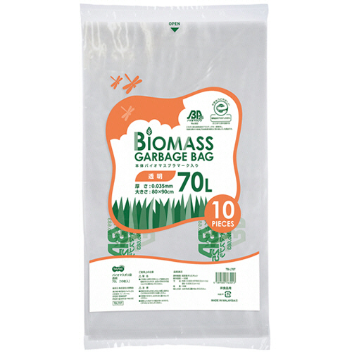 ■TPS バイオマス25ポリ袋 透明 70L 1パック(10枚)(TB-L70T) 目安在庫=○