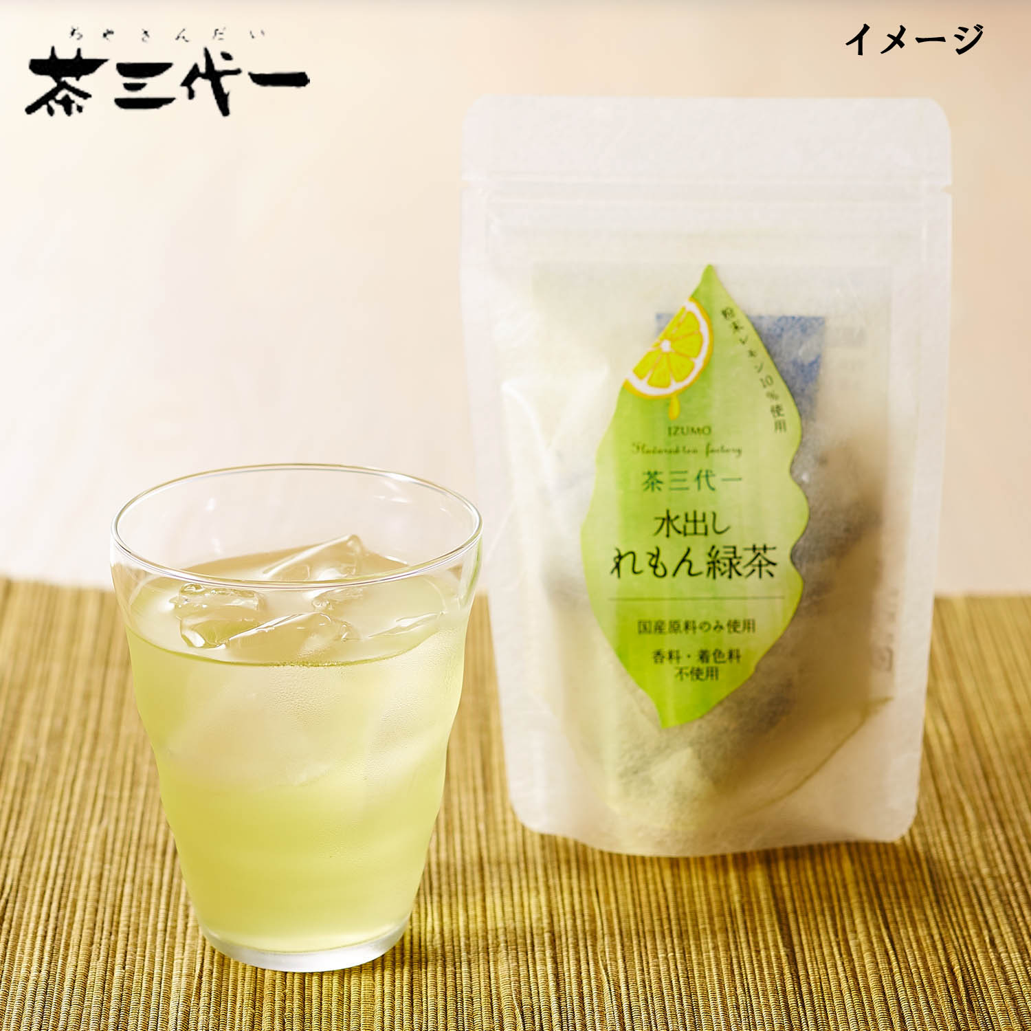 水出し緑茶に粉末レモンをたっぷり10%ブレンドしました。柑橘特有のほのかな苦みと風味が加わり、爽やかなおいしさです。香料・着色料を使用せず、すべて国産原料で作られているので、お茶と果実の自然な味わいが楽しめます。出雲で明治44年創業の老舗茶舗の「茶三代一」がお届け。同茶舗の健康への細やかな配慮が込められたセットです。500mlの水に1パックを入れて5時間ほど抽出し、軽く振ってからお召し上がりください。【簡単調理が可能】【保存が簡単】