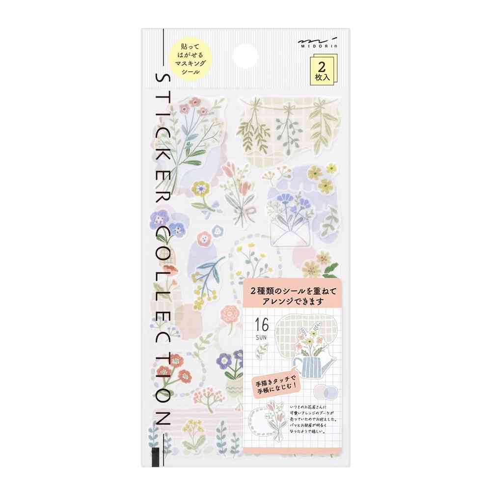手帳、ノートのデコレーションを楽しむための、マスキングテープ素材のシールです。半透明なので、重ねて貼ることで、より楽しいデザインができ上ります。手帳に限らず、ライフログやノートのデコレーションにも使いやすい大きめのモチーフも入っています。色鉛筆風の柔らかなタッチで描いた花柄です。花のガーランドやブーケ、花瓶の絵柄と花を組み合わせると、お好きなアレンジメントが作れます。2柄2枚入。