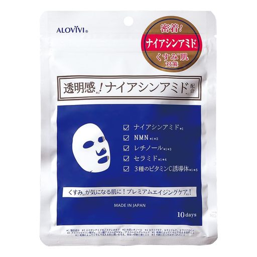 ■アロヴィヴィ ナイアシンアミドフェイスマスク 10枚入り 保湿 シートマスク ナイアシンアミド セラミド ヒアルロン酸 配合 無香料 無着色