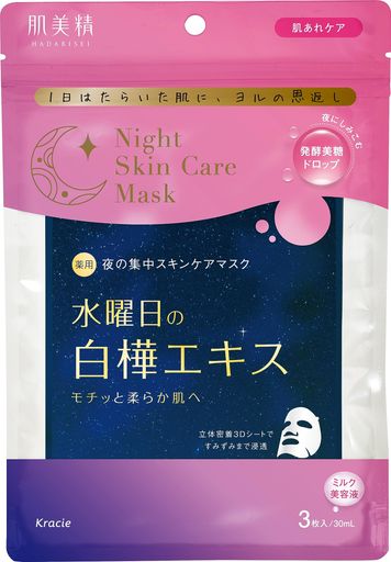 ■肌美精 【医薬部外品】 薬用 水曜日のナイトスキンケアマスク 3枚 夜間美容 肌荒れ 白樺エキス 美容液 スキンケア シートマスク シート