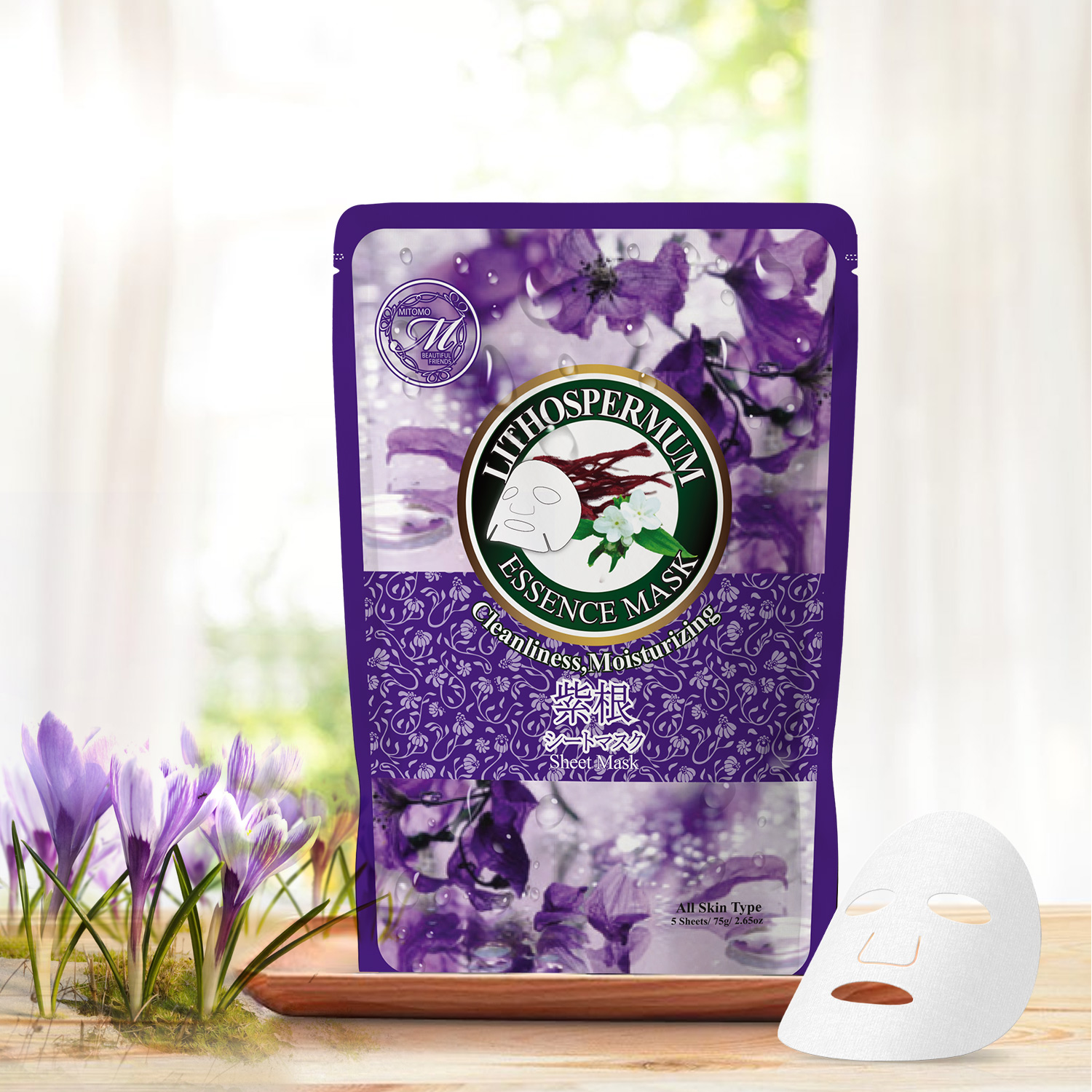 ■シートマスク フェイスマスク パック 紫根 5枚 日本製 メール便 天然シート スキンケア 乾燥 保湿 肌荒れ ポイント消化 MITOMO 紫根フェ
