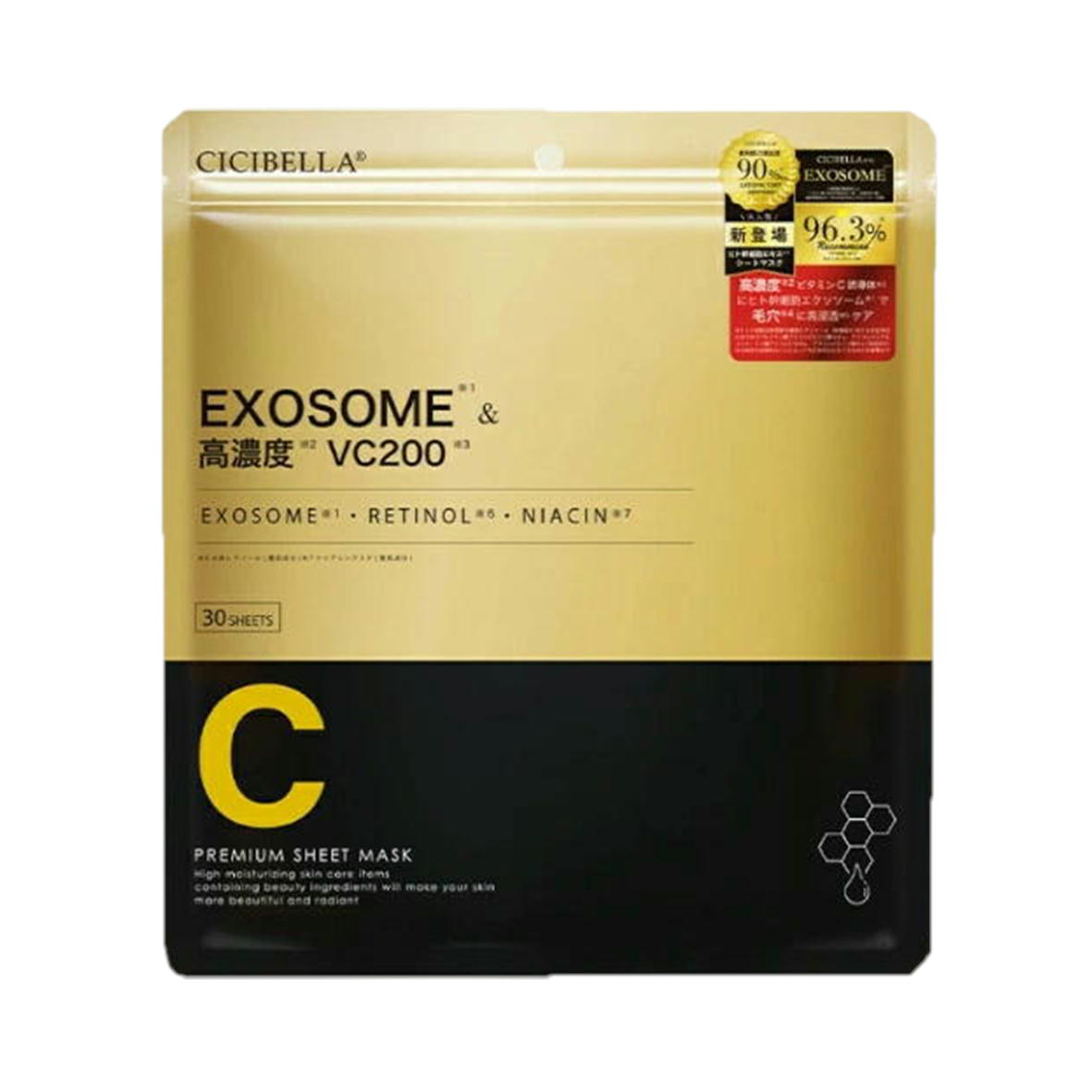 ■CICIBELLA シシベラ シートマスク 30枚入 【4580771745837】 エクソソーム 高濃度 VC200 レチノール ナイアシンアミド 顔パック フェイス