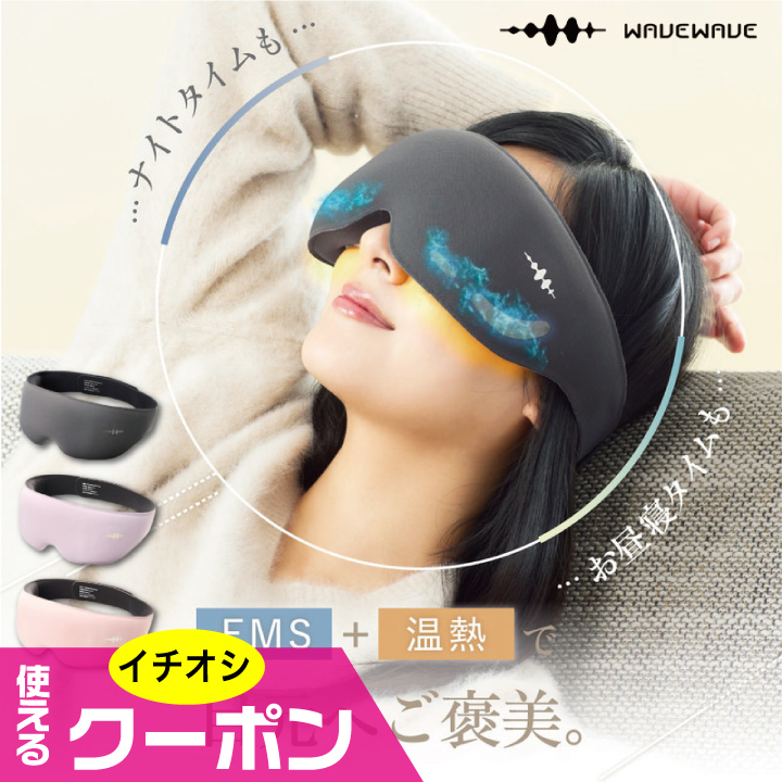 【出費を抑えたい方向け、送料無料!クーポン使って9%OFF!】【EMS×温熱で目元ケア】WAVEWAVE EMS Heat Eyeは、遮光率100%素材を使用し、EMS(低周波)と温熱のW機能で疲れた目元をケア。スマホやPCで酷使した目に、じんわりとした刺激と温かさを届け、リラックスへ導きます。EMSは5段階調整が可能で、目の下に心地よい刺激を与えリフレッシュ。温熱は約38℃と42℃の2段階で、ホットタオルのような心地よさ。立体設計でまつ毛も圧迫せず、遮光しながら快適に使用可能。サイズ調整も簡単なマジックテープ式。USB充電でコードレス使用OK。