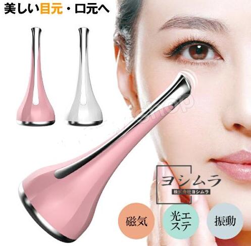目元美顔器 目元ケア マッサージ 磁気導入 光エステ 振動 美顔器 マイクロカレント 目元 口元ケア 微電流 フェイス 首ケア アイケア フェイスケア 電池タイプ 母の日 プレゼント かわいい ホワイト ピンク
