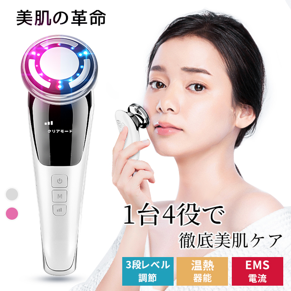 ■美顔器 超音波美顔器 EMS微電流 リフトアップ 目元ケア LED 温熱モード フェイスケア美顔器 3段階レベル 4モード 誕生日プレゼント