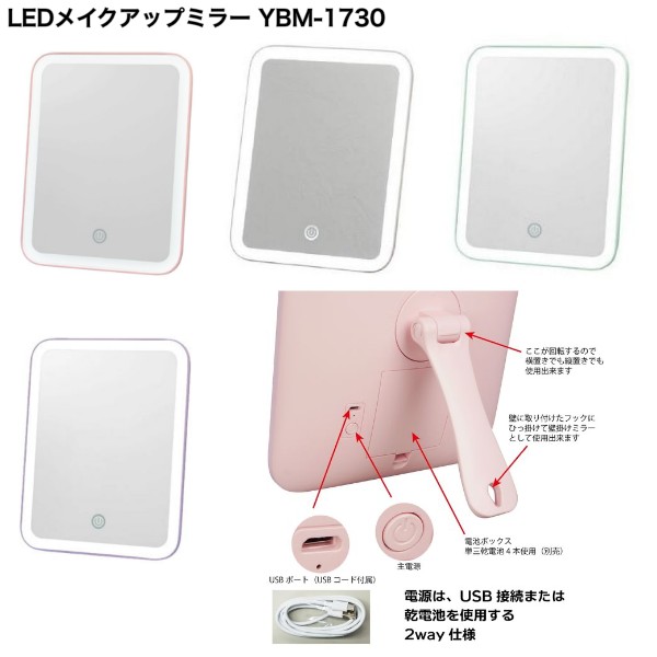 ■ヤマムラ LEDメイクアップミラー YBM-1730 タッチセンサー オートオフ機能 鏡母の日 父の日 ギフト プレゼント 敬老の日