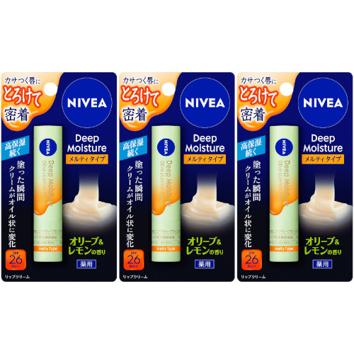 ■ニベア ディープモイスチャーリップ メルティタイプ オリーブ&レモンの香り 2.2g【3個セット】【メール便】(4901301418753-3)