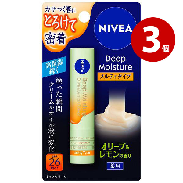 ■【ネコポス対応】【医薬部外品】花王 ニベア ディープモイスチャーリップ メルティタイプ オリーブ&レモンの香り 2.2g 3個