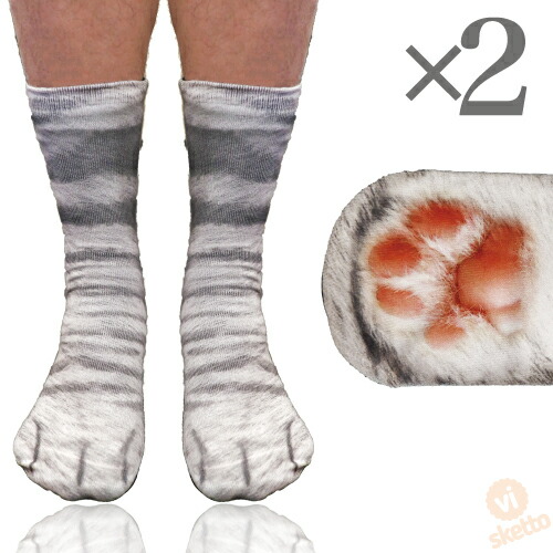 ■[2本SET]アニマル ソックス 猫C [ ユニセックス ] ( キジトラ 送料無料 動物 靴下 動物の足 大人 通気性 プレゼント お土産 動物園 パー