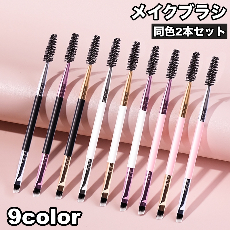 ■メイクブラシ 2本セット アイブロウブラシ アイシャドウブラシ 2way 両頭 メイクアップ 化粧道具 メイク用品 メイクツール