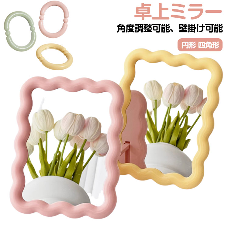 ■スタンドミラー テーブルミラー 壁掛け 長方形 卓上ミラー 化粧鏡 円形 壁面 スクエア 卓上鏡 メイクアップ 身だしなみ 玄関 かわいい お