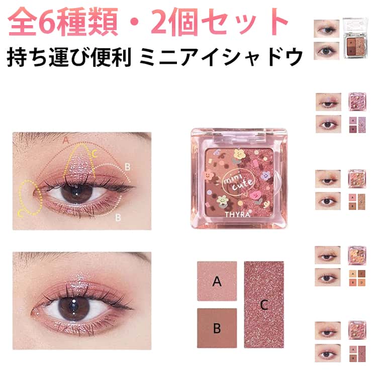 ■コンパクト アイシャドウ 2個セット メイクアップ 6type キラキラ アイシャドウ ミニ アイシャドウパレット Eyeshadow アイシャドウ 可愛