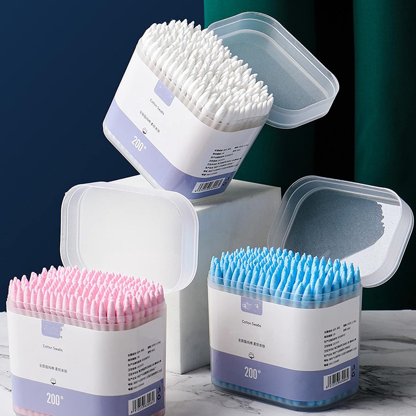 ■400本 ファミリー綿棒 メイクアップ 綿棒 メイクアップ修理 まつげブラシ こだわり綿棒 スゴふわっ綿棒 青 純綿