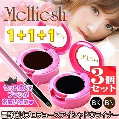 エントリーするだけでポイント増量!! POPTEENイチの美容番長 菅野結以 プロデュースブランドMelliesh! ・アイシャドウ用ブラシ ・アイライナー用ブラシ 2WAYパウダーに使えます。 2wayで使えるアイシャドウライナーとラインが描きやすい。 【2wayでアイメーク自由自在】 ・水ありでリキッドアイライナーみたいなくっきりラインに! ・水なしでふんわりナチュラルなぼかしラインに! 【ラインが描きやすい短毛ブラシ】 ・極細平筆で思い通りのアイラインに! ・よれずに描ける短毛ブラシは別売り。 アイラインを描くのが苦手な人でも使いやすい。 ブラシの毛の短さが細かい部分もヨレずにかけちゃいます♪