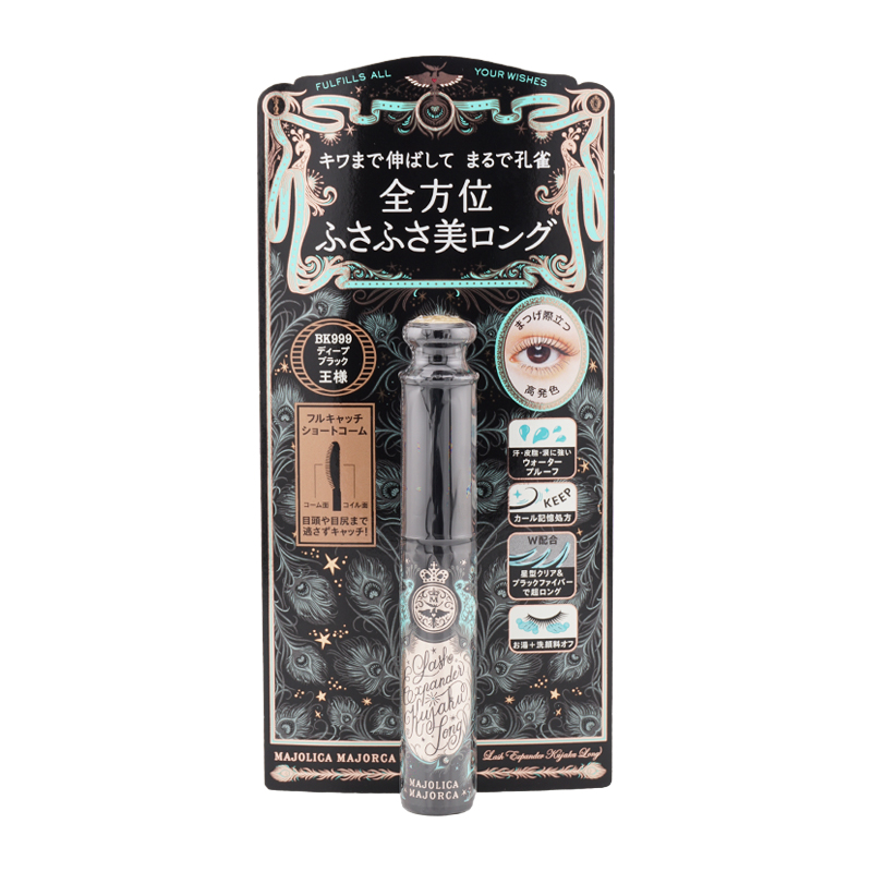 JAN 4909978223861 キワまで伸ばして全方位ふさふさ 美ロングマスカラ 【商品名/内容物】 SHISEIDO 資生堂 マジョリカマジョルカ ラッシュエキスパンダー 孔雀ロング BK999 ディープブラック マスカラ メイクアップ 【使用方法】 ●コームを容器の中で3回まわし、液を十分にからませます。 (1)コイル面を、まつ毛の根もとにあて、持ち上げます。 (2)コーム面を、まつ毛の根もとから毛先に向かってすーっととかしあげます。 [ポイント] まつ毛の上で、コームを左右にジグザグ動かさず、ゆっくりとかすことで、根もとから自然に伸びたようなまつ毛に仕上がります。 ●落とすときは、マスカラにお湯をよくなじませた後、洗顔料でやさしくなでるように洗い流します。