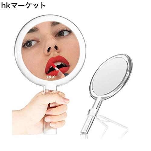 ■MILEDUO 両面手持ちミラー スタンド付き 1X/10X 拡大鏡 ハンドル付き クリア 調節可能な手持ちミラー ラウンド メイクアップ ハンドミラ
