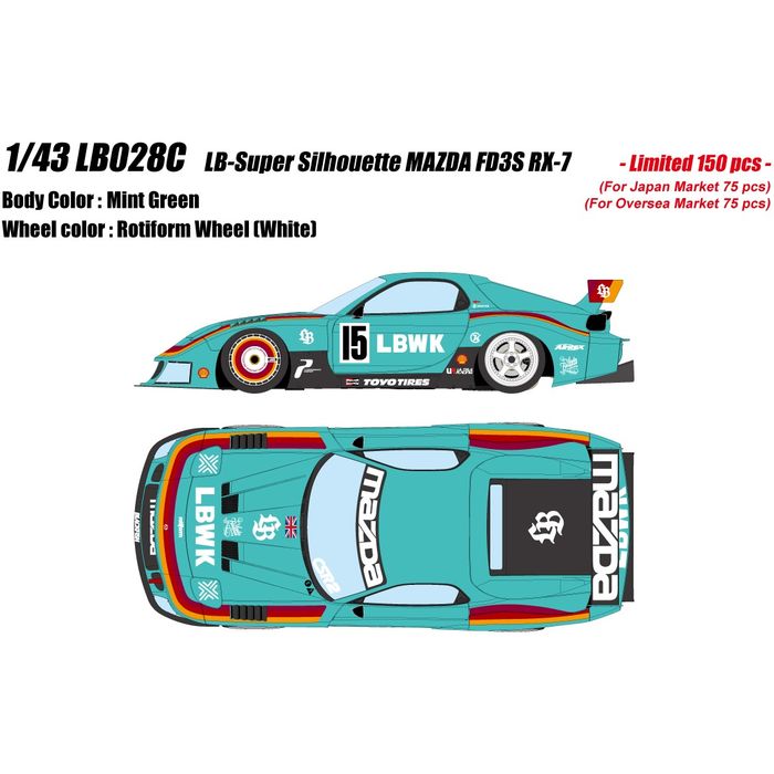 ■限定 1/43 LB-スーパーシルエット マツダ FD3S RX-7 ミニカー 完成品 塗装済み ミントグリーン メイクアップ LB028C