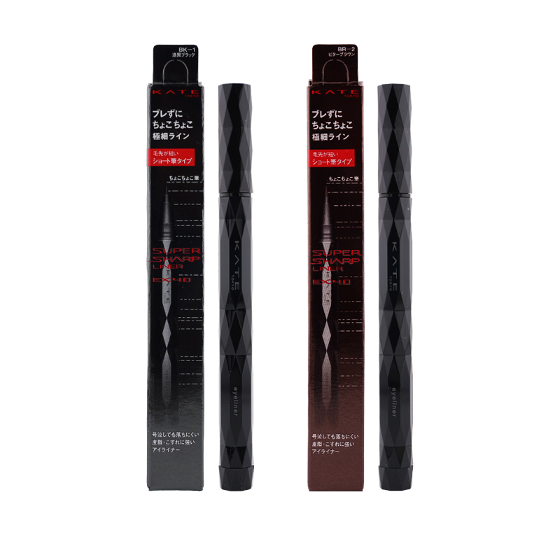 JAN 4973167051276 BK-1 漆黒ブラック JAN 4973167051306 BR-2 ビターブラウン 毛先が短いショート筆タイプのリキッドライナー 【商品名/内容物】 [2種類から選べる]KATE ケイト スーパーシャープライナーEX4.0 ショート筆 BK-1 BR-2 0.5m L 【使用方法】 ○初めてご使用になる際は、本体を横にした状態で横に2〜3回軽く振ってからご使用ください。 〇強く振ったり、落下などの衝撃により液漏れを起こし、キャップ内や衣服を汚す恐れがありますのでご注意ください。 〇飛行機内でのご使用は、液漏れの原因となりますのでご使用にならないでください。 〇筆先が傷まないように丁寧にキャップを開閉ください。 〇ご使用後はカチッと音がするまで、キャップをきちんと閉めてください。キャップをはずしたまま放置すると、筆が乾いて描けなくなります。