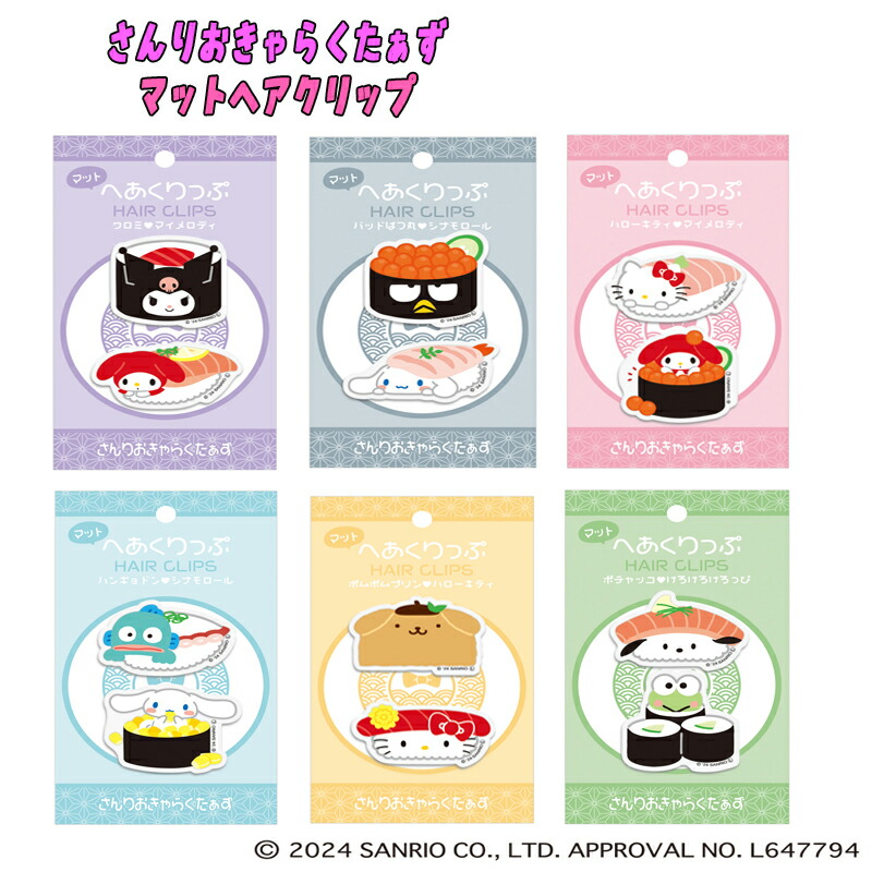 ■【メール便送料無料】さんりおきゃらくたぁず マット ヘアクリップ お寿司 サンリオ 前髪止め 洗顔 メイクアップ キャラクター 洗面 (ハ