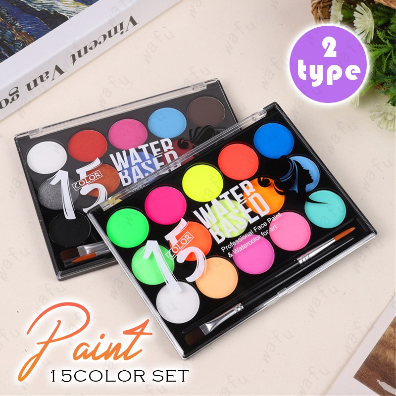 ■cs690#フェイスペイント 15色 当日発送 2type ボディペイント アートメイク 筆 アイシャドウ アイライン チーク メイクアップ 化粧 コス