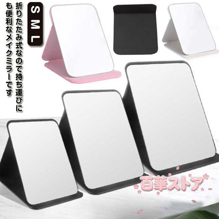 ■スタンドミラー 卓上鏡 卓上ミラー 化粧鏡 折りたたみ式 角度調整 コンパクト 自立式 持ち運び 旅行用 メイクアップ 大きい 見やすい プ