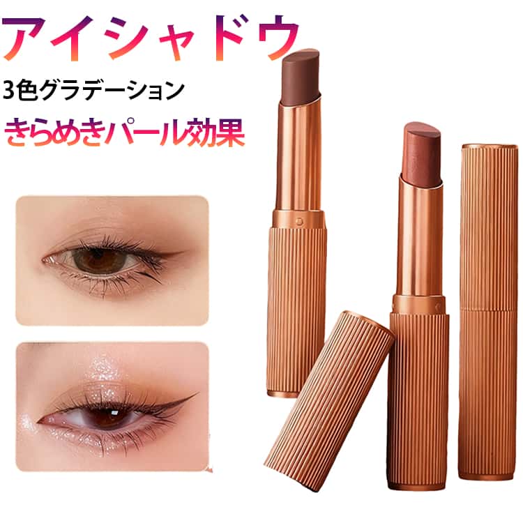 ■アイシャドウスティック 2本セット 高発色 3色グラデーション アイシャドウ 時短メイク アイメイク 高密着 涙袋 初心者 メイクアップ ひ