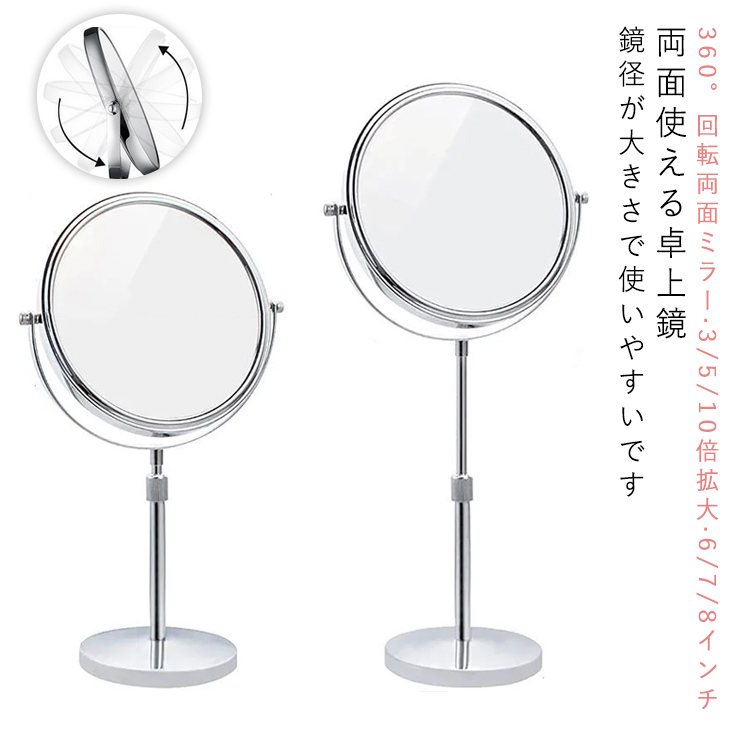■スタンドミラー 卓上 卓上鏡 両面鏡 裏面 3倍 5倍 10倍拡大鏡 卓上ミラー 高さ 調節 6インチ 7インチ 8インチ 両面 メイクアップ ショッ