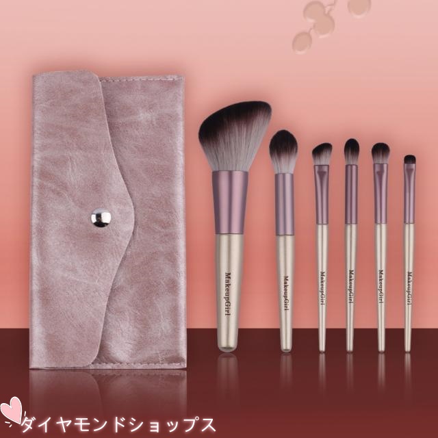 ■メイクブラシ 6本セット 専用ケース付き ミニサイズ レディース 筆 メイクアップ お得 お買い得 フェイスブラシ パウダーブラシ アイシャ