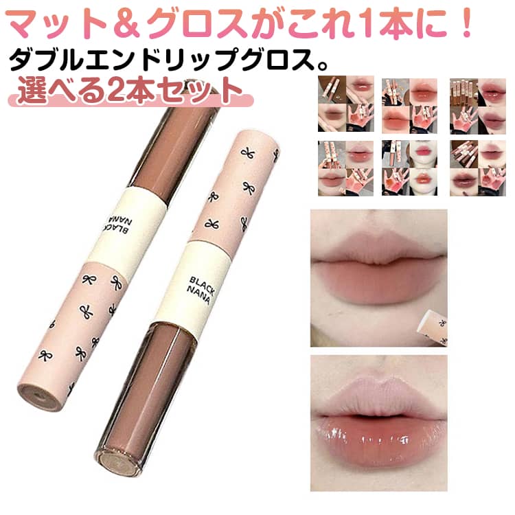 ■うるおい 泥リップ 高密着 リップグロス 2本セット 2in1 メイクアップ エッセンスリップティント 口紅 ダブルエンドリップグロス 高保湿