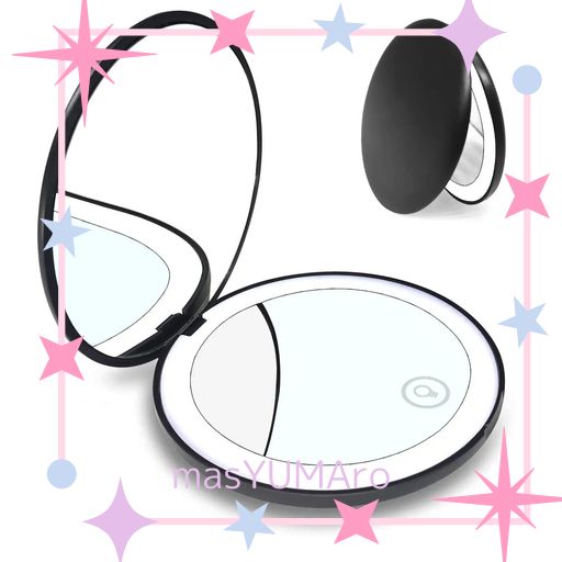 ■コンパクトミラー 等倍 & 10倍両面鏡 ライト付き 折りたたみ 化粧鏡 携帯ミラー 無段階調光 角度調整可 メイクアップ USB充電式 プレゼント