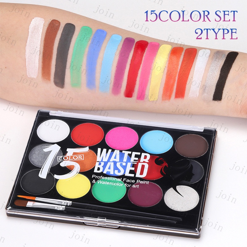 ■cs690#フェイスペイント 15色 当日発送 2type ボディペイント アートメイク 筆 アイシャドウ アイライン チーク メイクアップ 化粧 コス