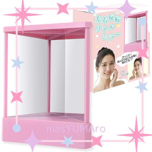 ■日本レリア リアルックミラー 左右非反転タイプ 卓上 正像 鏡 メイクアップ 化粧鏡 角度調節可能 歪みなし 高精細 スタンドミラー (桜ピ