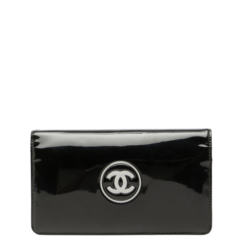 ■シャネル ココマーク メイクアップ 長財布 ブラック エナメル パテント レディース CHANEL 【中古】