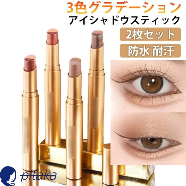 初心者向け 2枚セット 3色グラデーション メイクアップ 耐皮脂 アイシャドウスティック 高密着 耐汗 高発色 涙袋 ひと塗り アイシャドウ 高発色 2枚セット 落ちにくい 韓国コスメ キラキラ 使用簡単 メイク用品 プレゼント