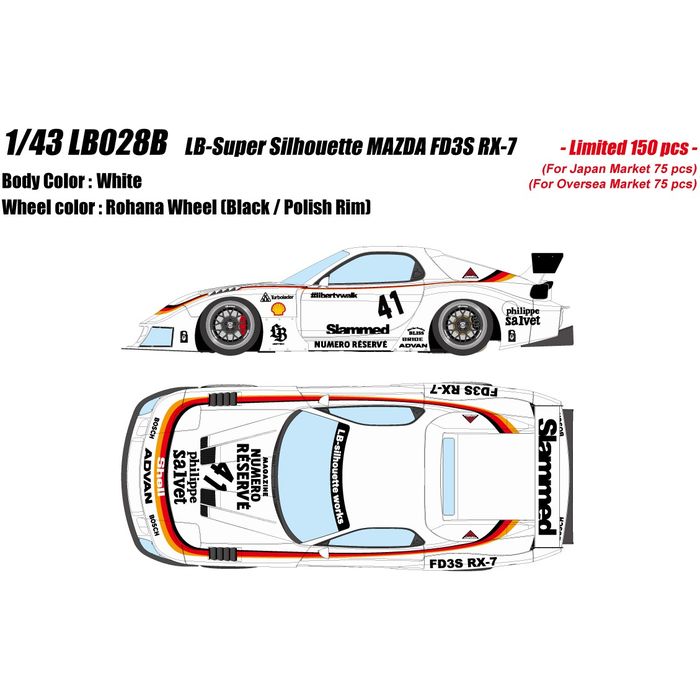 ■限定 1/43 LB-スーパーシルエット マツダ FD3S RX-7 ミニカー 完成品 塗装済み ホワイト メイクアップ LB028B