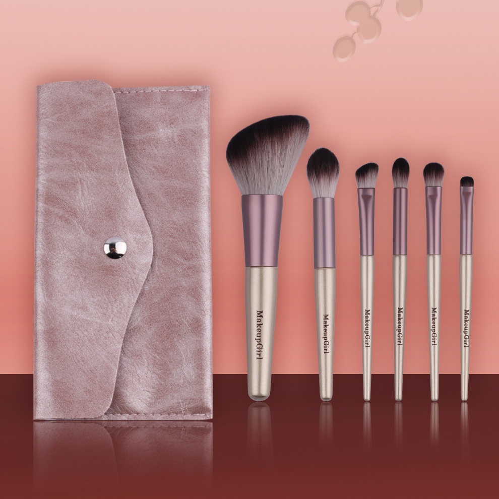 ■メイクブラシ 6本セット 専用ケース付き ミニサイズ レディース 筆 メイクアップ お得 お買い得 フェイスブラシ パウダーブラシ アイシャ