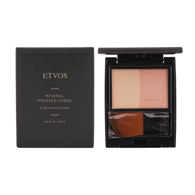 JAN 4580682135536 内からぽっと色づく頬を、天然ミネラルで 【商品名/内容物】 ETVOS エトヴォス ミネラルプレストチーク SPF20 PA++ 本体 シェリーコーラル 4.5g 【使用方法】 メインカラーとハイライトカラーの2色をブレンドしながらブラシにとり、頬の高い位置に斜めに楕円を描きます。 ハイライトカラーをブラシにとり楕円の周りを囲むようにしてぼかします。