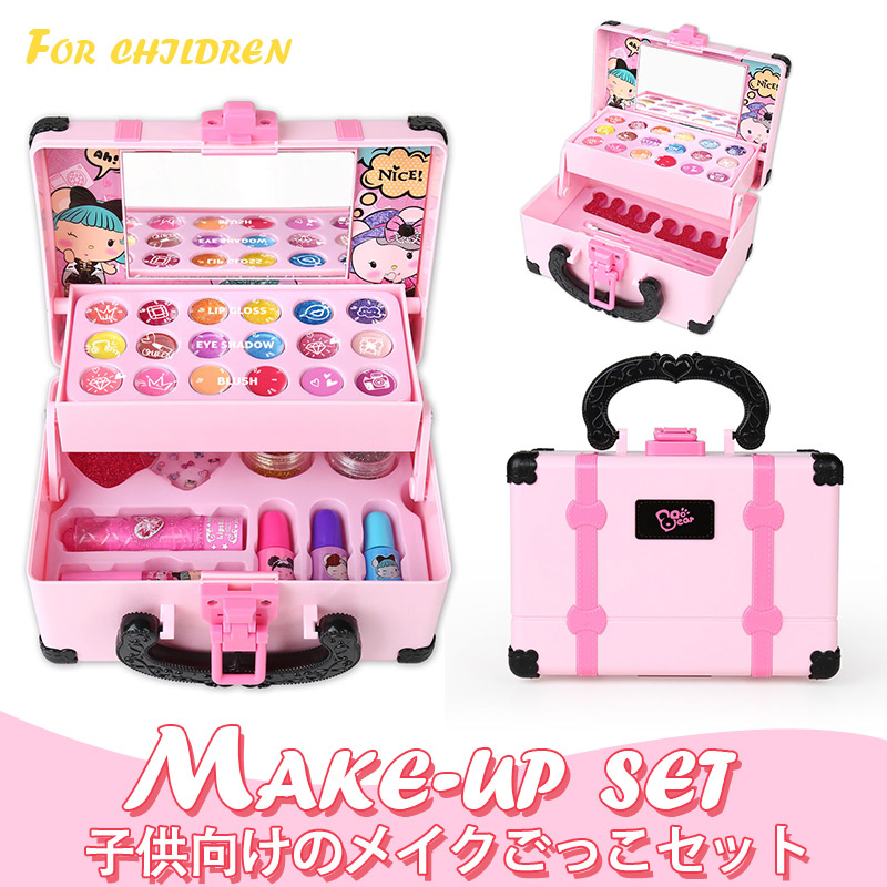■化粧ケース メイクセット 子供用 女の子向け メイクアップボックス お化粧おもちゃ 可愛い安全 ままごと メイクアップ 化粧品 ク