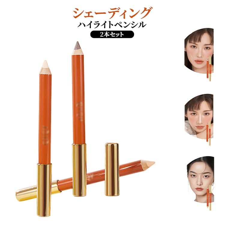 ■メイクアップ ディテールペン 2本セット ハイライト シェーディング シェーディング 輪郭 スティック 描きやすい 陰影 ペンシル シャープ